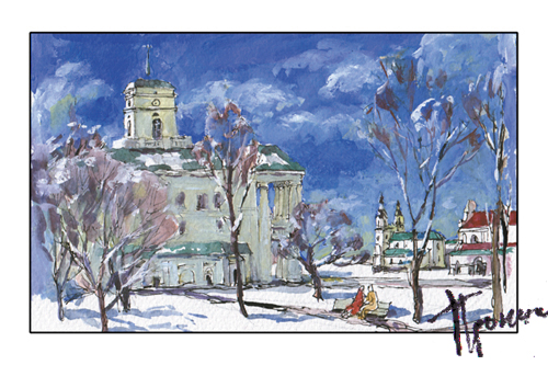 ![]() Рисунок Ратушы и Свято-Духова Собора |