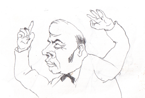 ![]() Шестой рисунокВидимо эо дирижер. Это можно предположить по странному движению рук. А так же по странному несколько даже сумасшедшему взгляду. И вот значит что же это такое - это такой вот рисунок, даже можно сказать шарж на дирижера! |